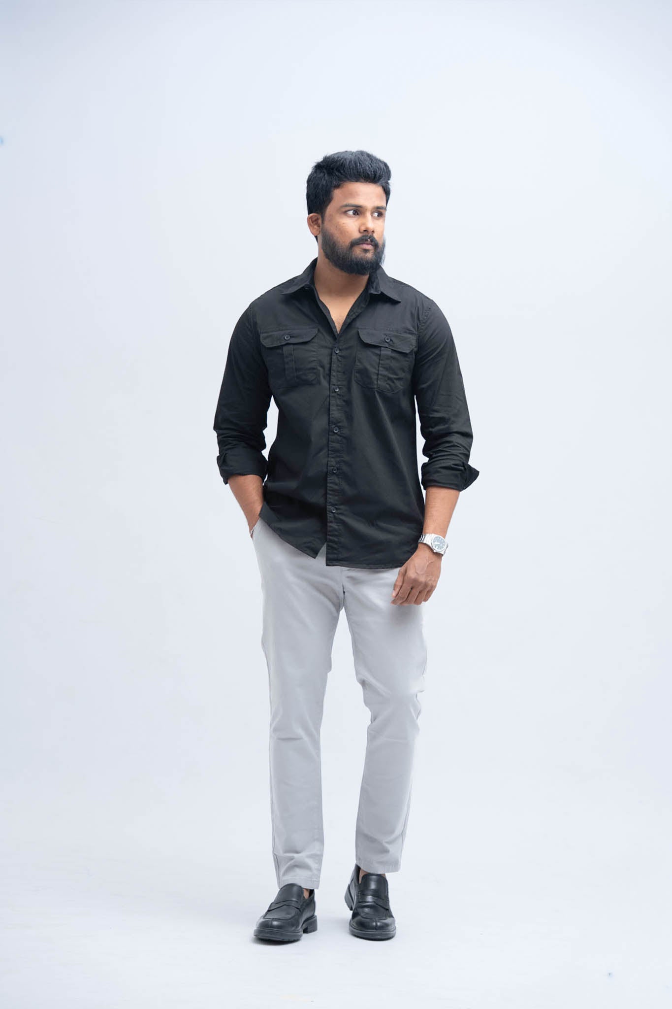 * Roll up the hem slightly for a more casual, streetwear touch.