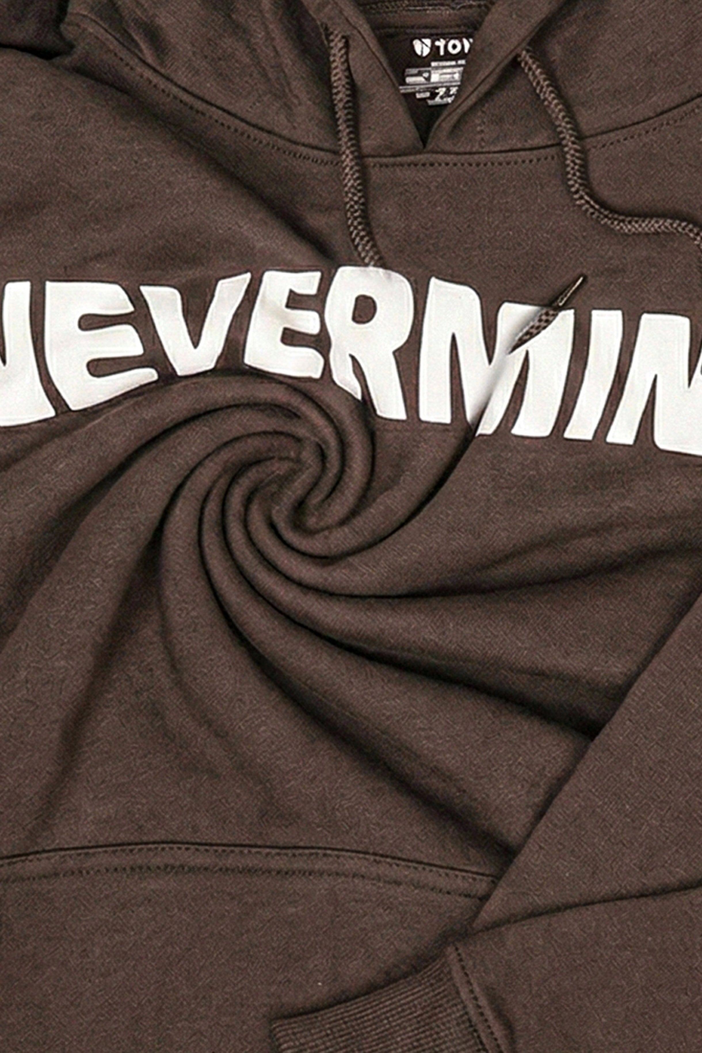Crafted in premium 230 GSM fleece, this oversized hoodie is designed to run one size bigger for a relaxed, slouchy fit. The bold NEVERMIND front graphic and MOVE ON back typography create a directional, statement-driven aesthetic with a modern streetwear edge. Finished with a kangaroo pocket, ribbed trims, and a structured hood for everyday comfort.