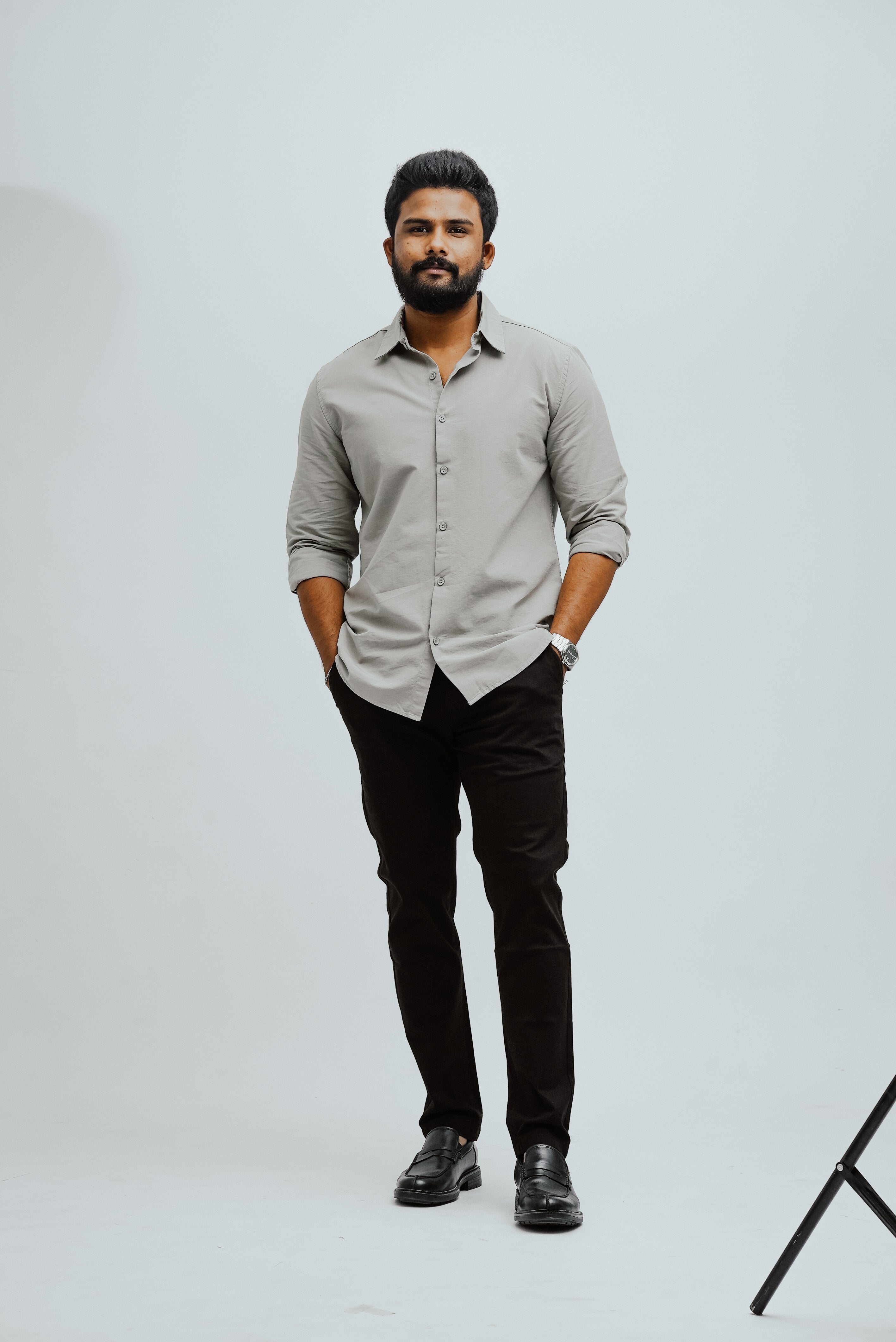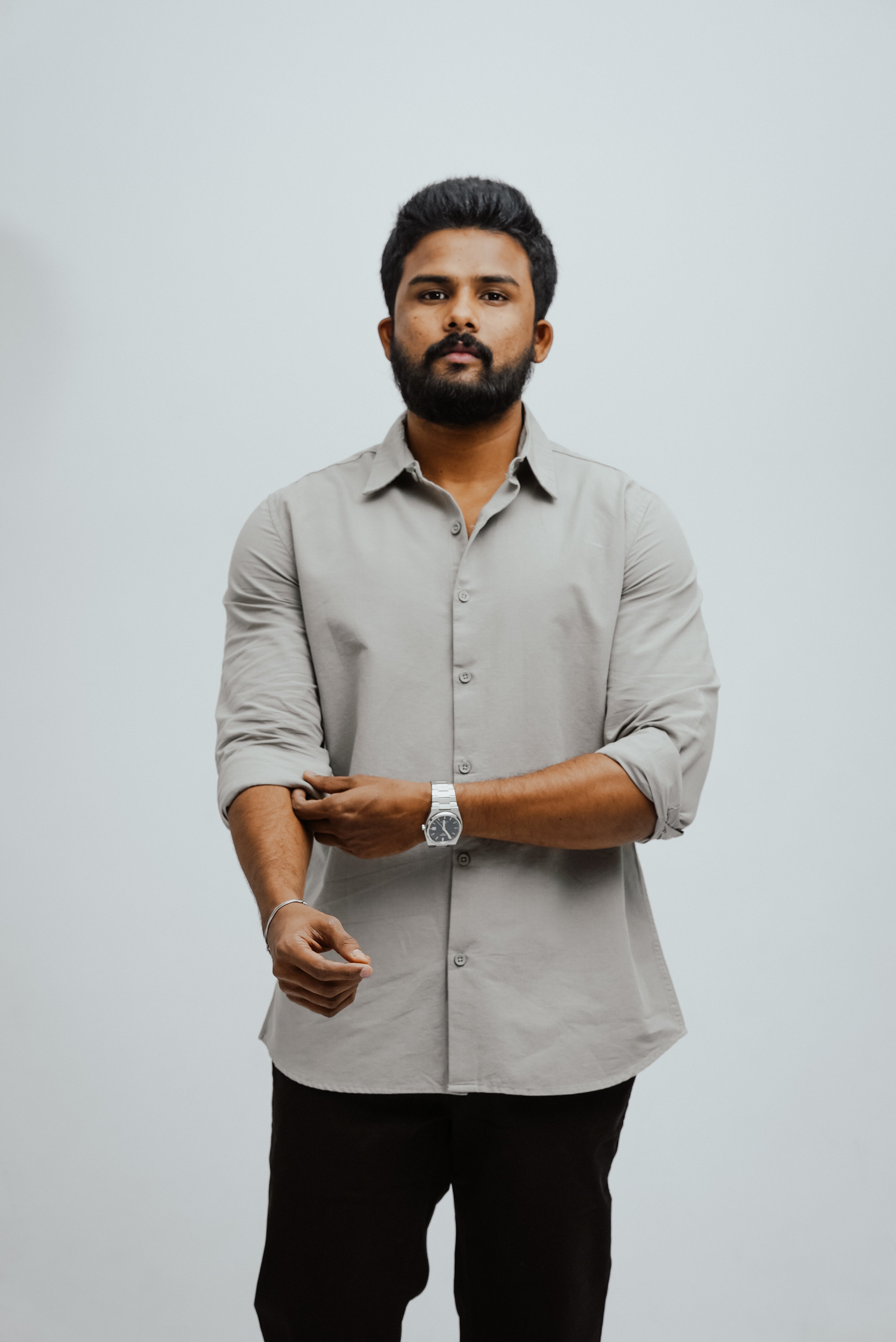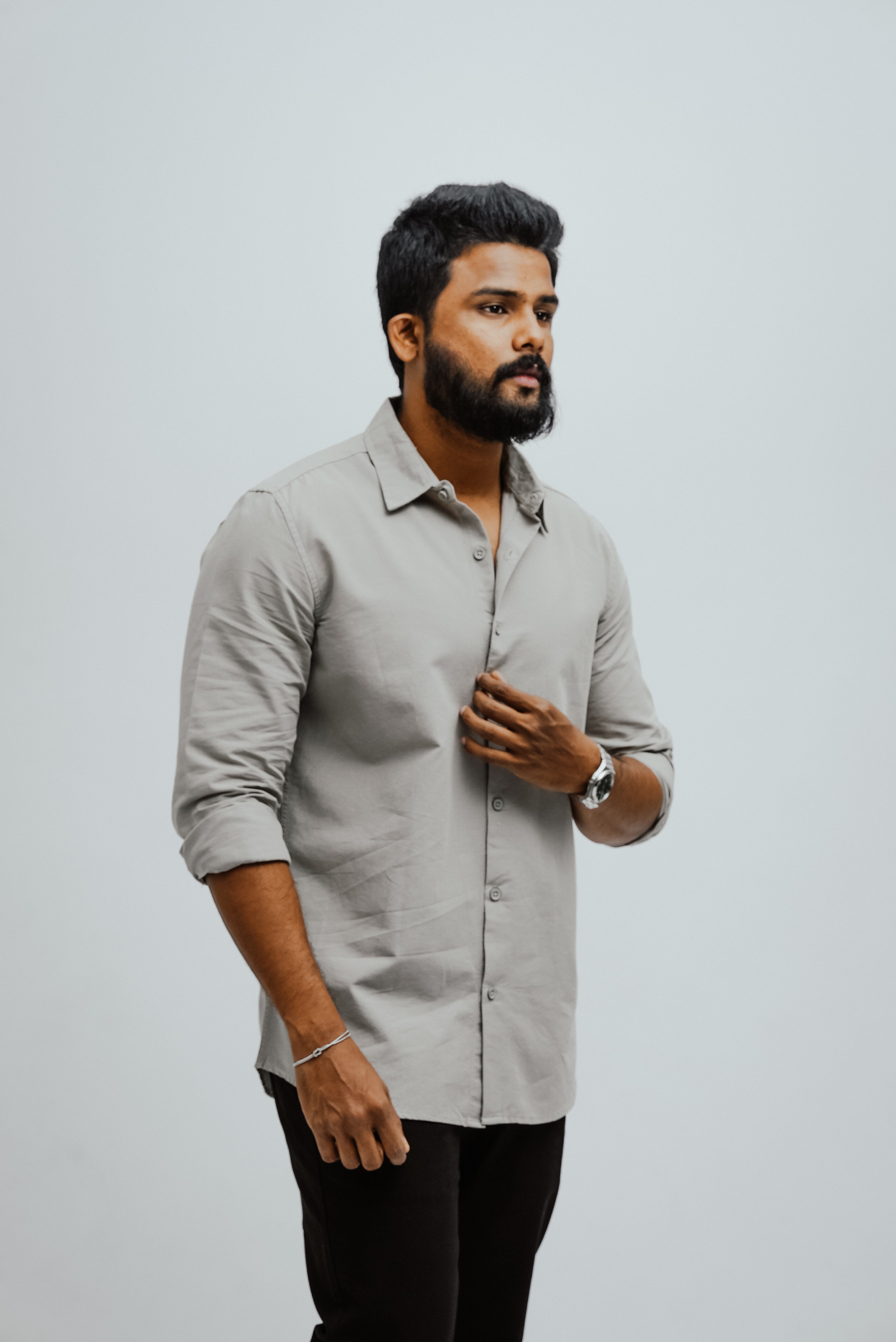 Pair it with tailored trousers for a sleek semi-formal look, or with dark denim for a smart-casual edge. For business settings, layer it under a blazer, while for relaxed evenings, keep it untucked with rolled-up sleeves. Finish with loafers or classic lace-ups to match the occasion.