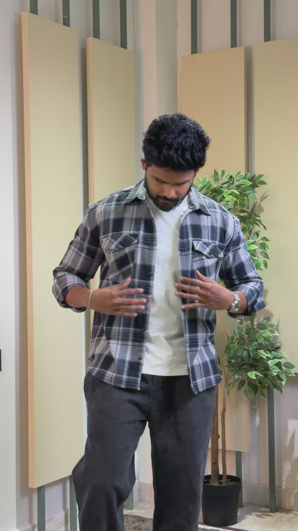 CHARCOAL GREY DOUBLE POCKET FLANNEL SHIRT