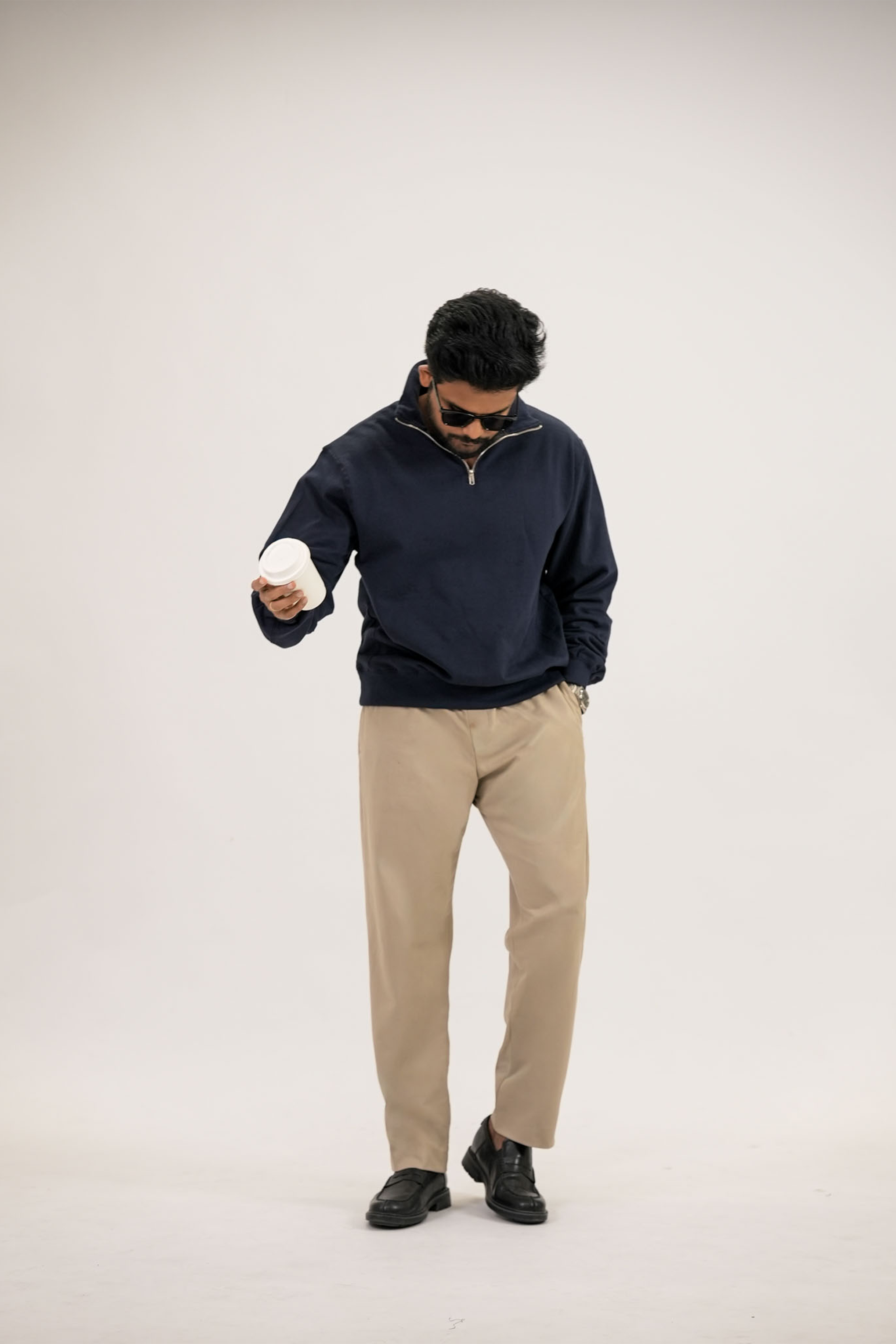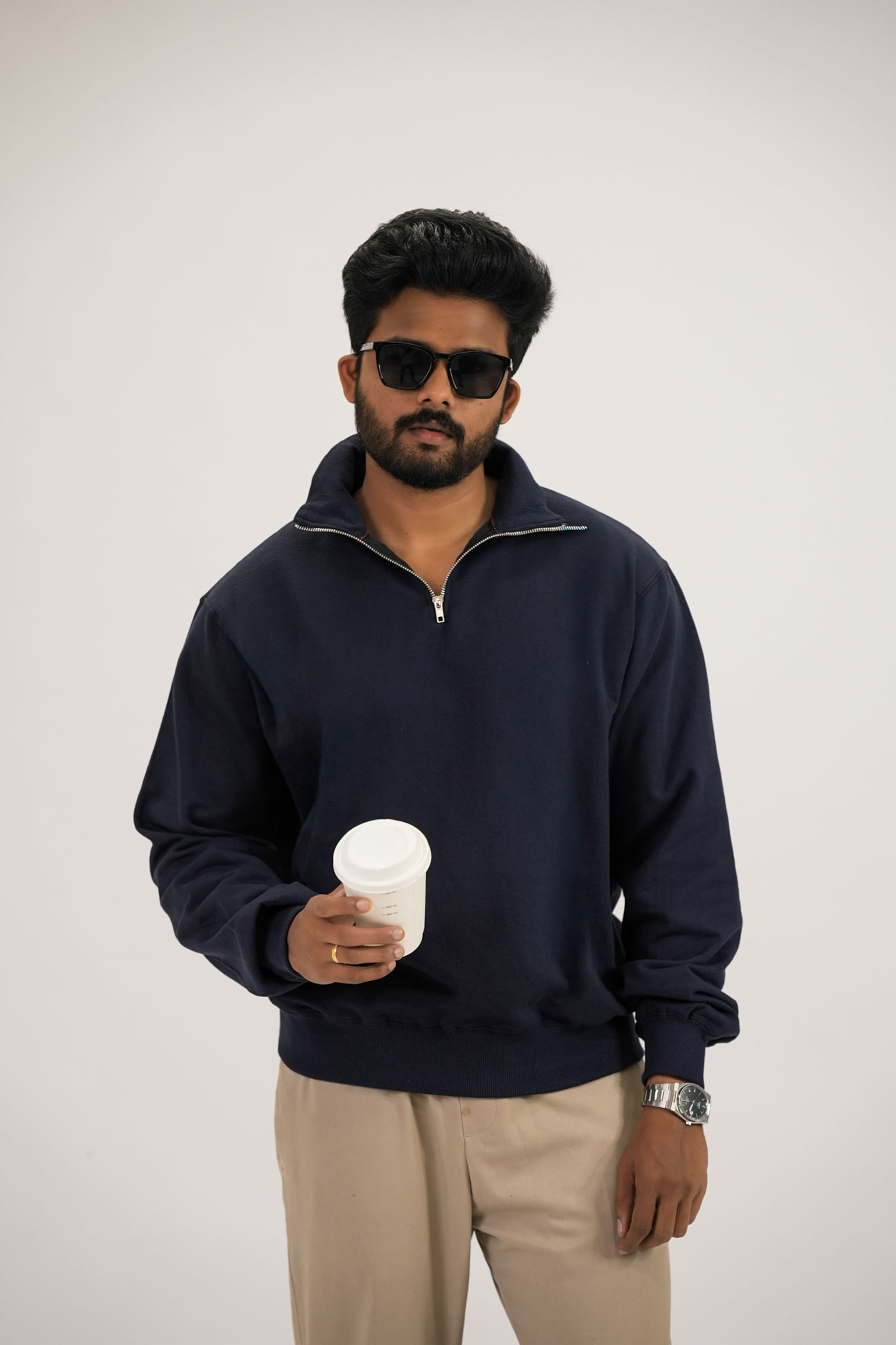 Product Description: The sweatshirt has a curved sleeve panel for a better fall, double-needle stitching for strength and a premium finish, a back yoke that adds structure and broader shoulders, and a high-quality half-zip with a sturdy collar. The hem and cuffs are made with dense ribbing so they hold their shape and sit neatly. It’s crafted in a heavy brushed fleece that’s soft on the inside and structured on the outside, giving the whole piece a clean, elevated, well-constructed look.