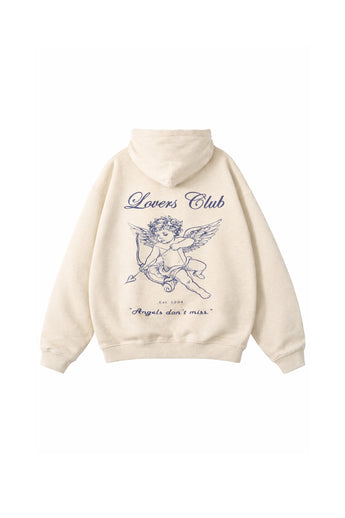 Crafted in soft 230 GSM fleece, this hoodie offers a premium hand-feel with a relaxed, oversized silhouette that runs one size bigger for an intentional slouchy fit. The back features a vintage cupid graphic with Lovers Club typography, blending romantic nostalgia with modern streetwear. Finished with a kangaroo pocket, ribbed trims, and a roomy hood for everyday comfort.
