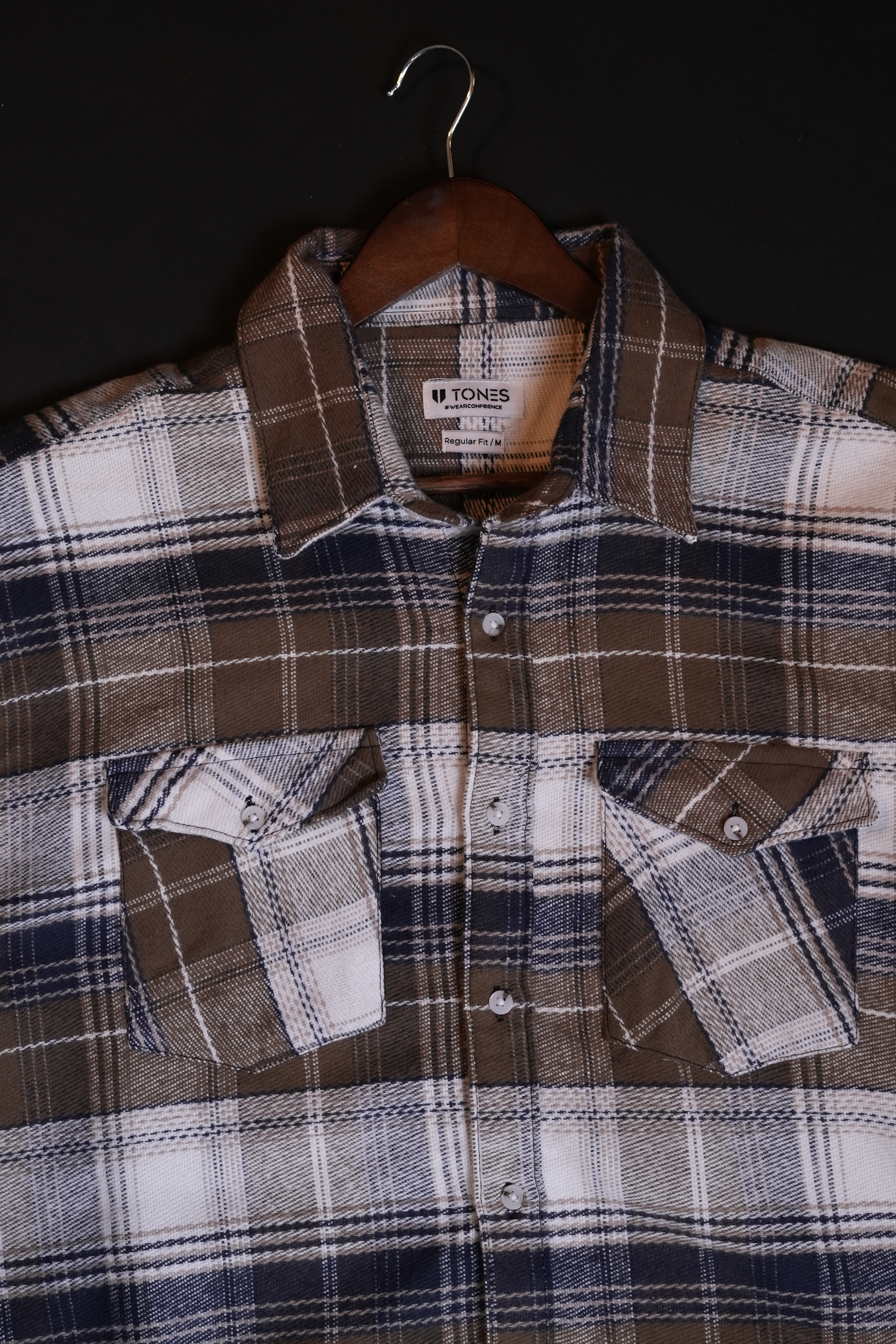 BROWN DOUBLE POCKET FLANNEL SHACKET