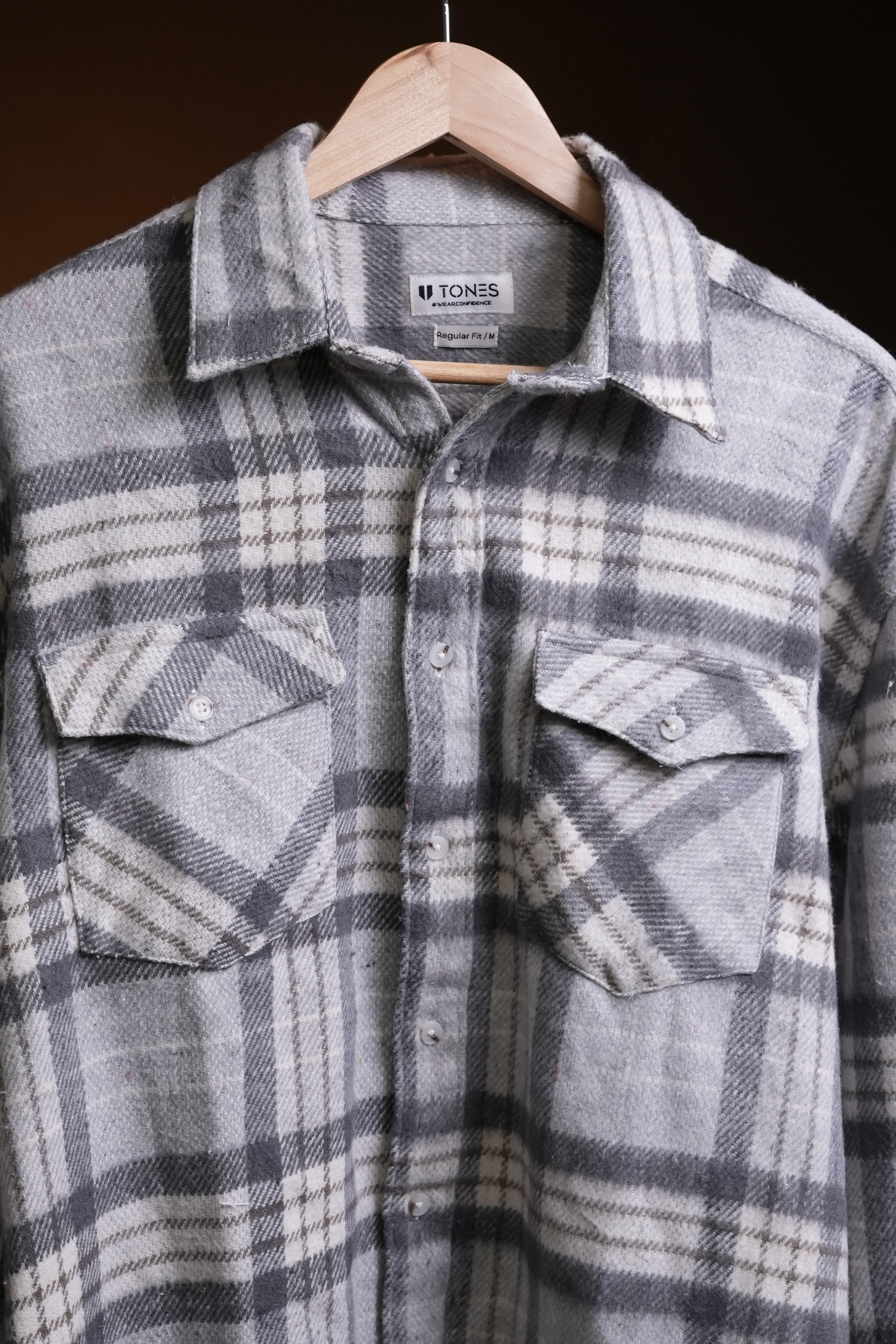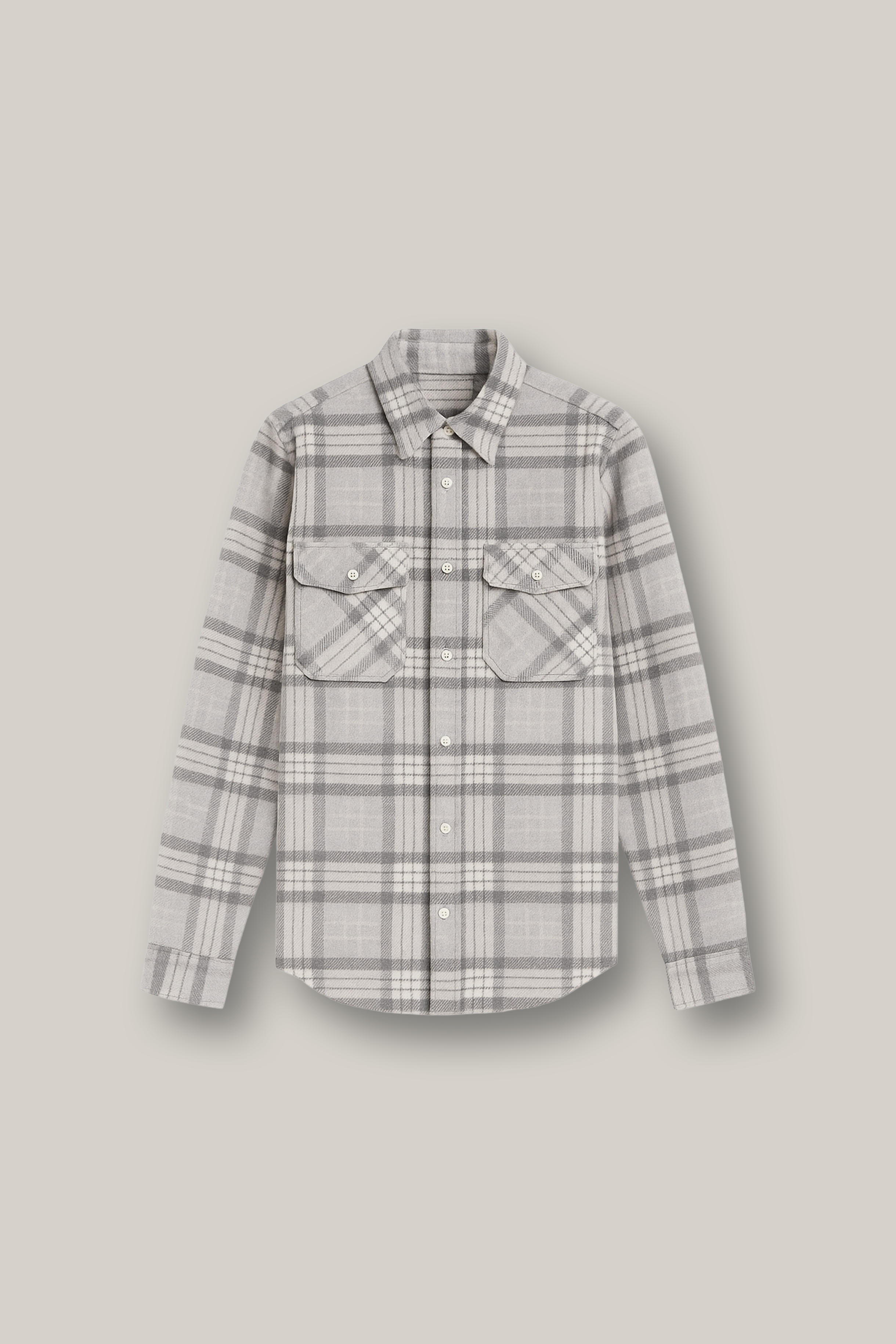 GREY DOUBLE POCKET FLANNEL SHACKET