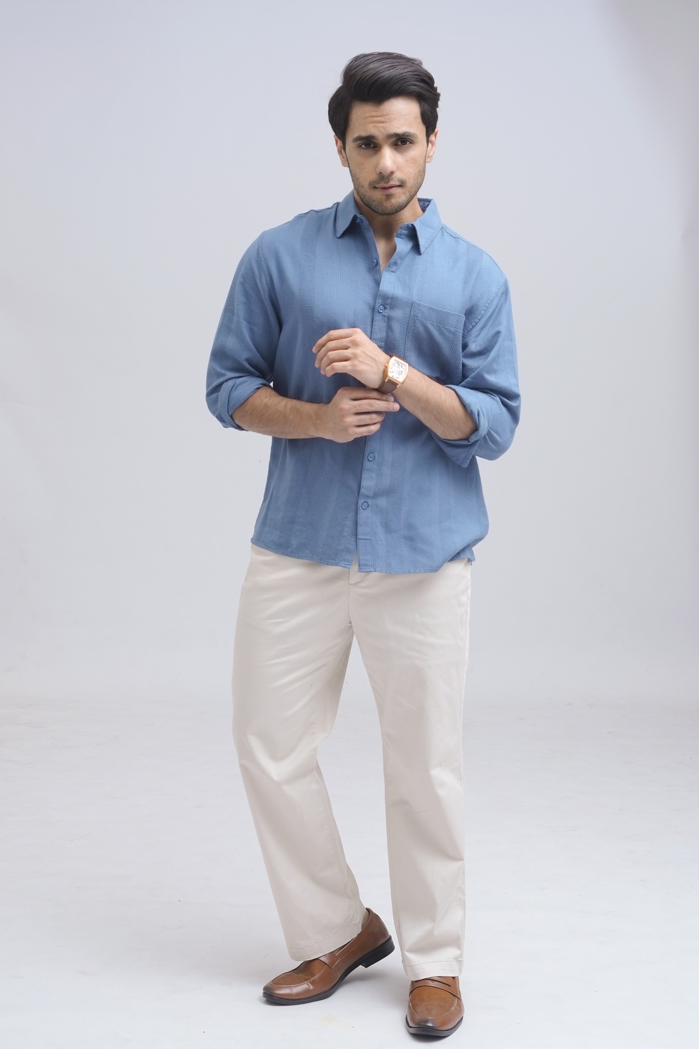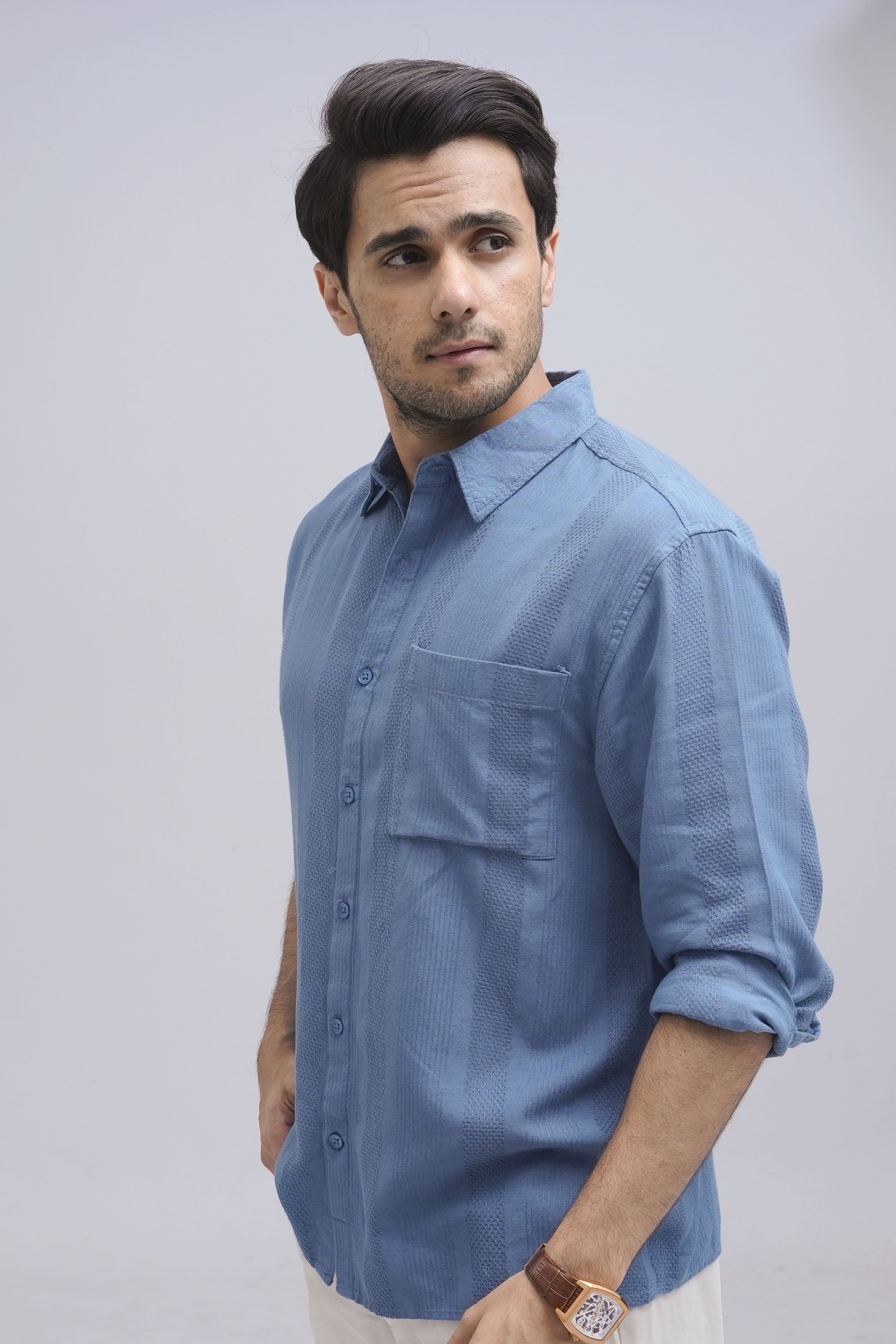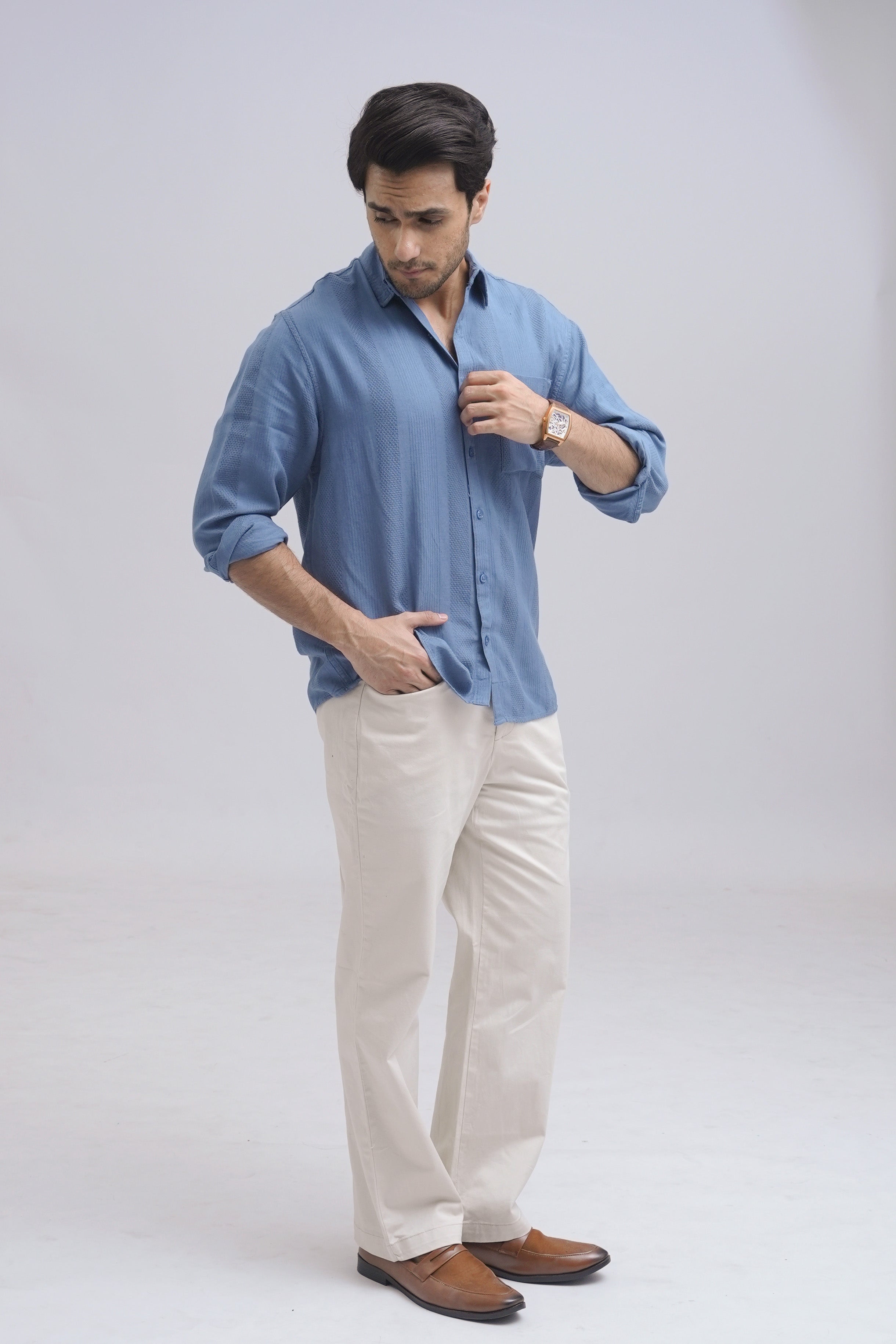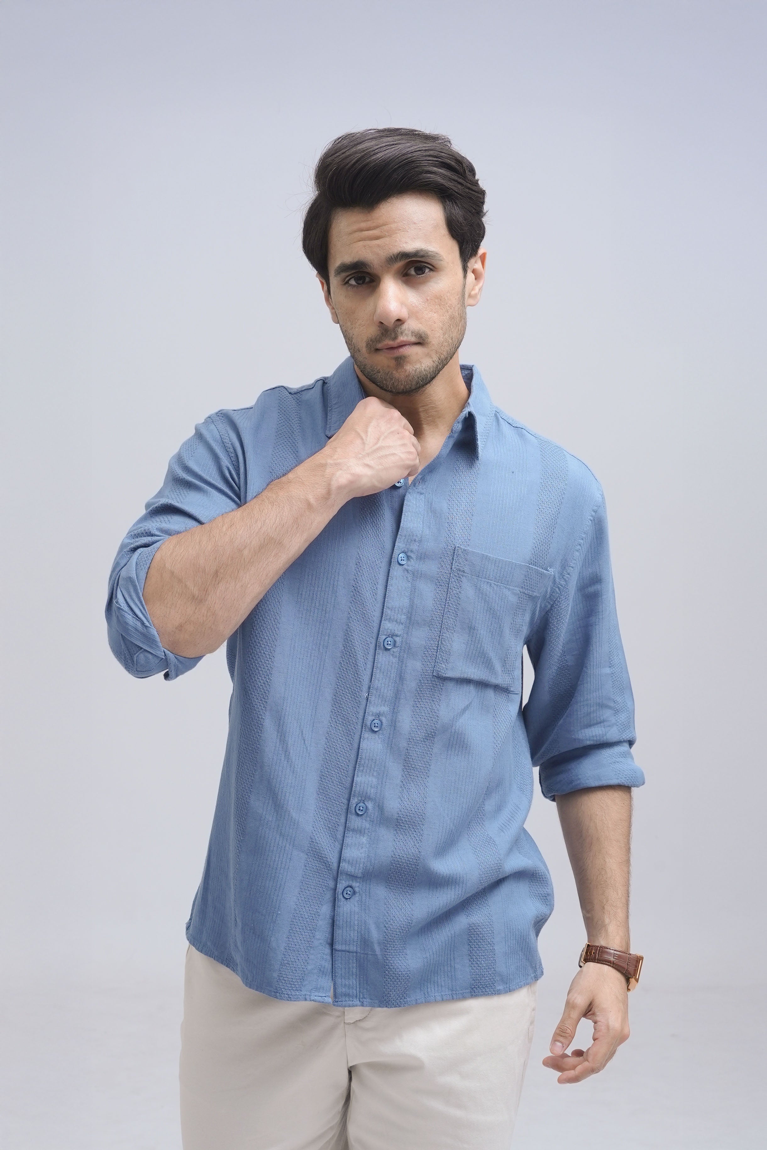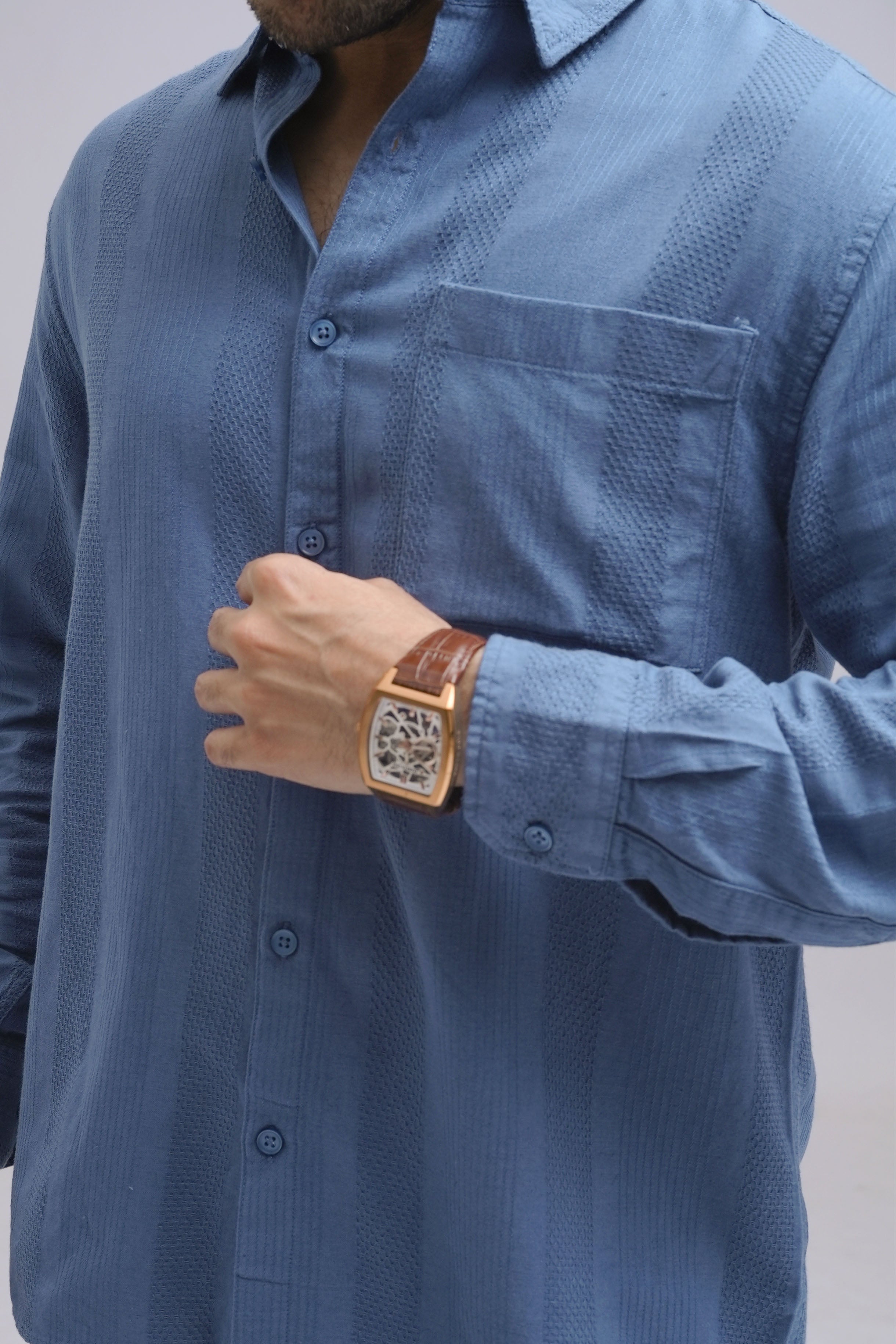 Linen Blue Textured Shirt
