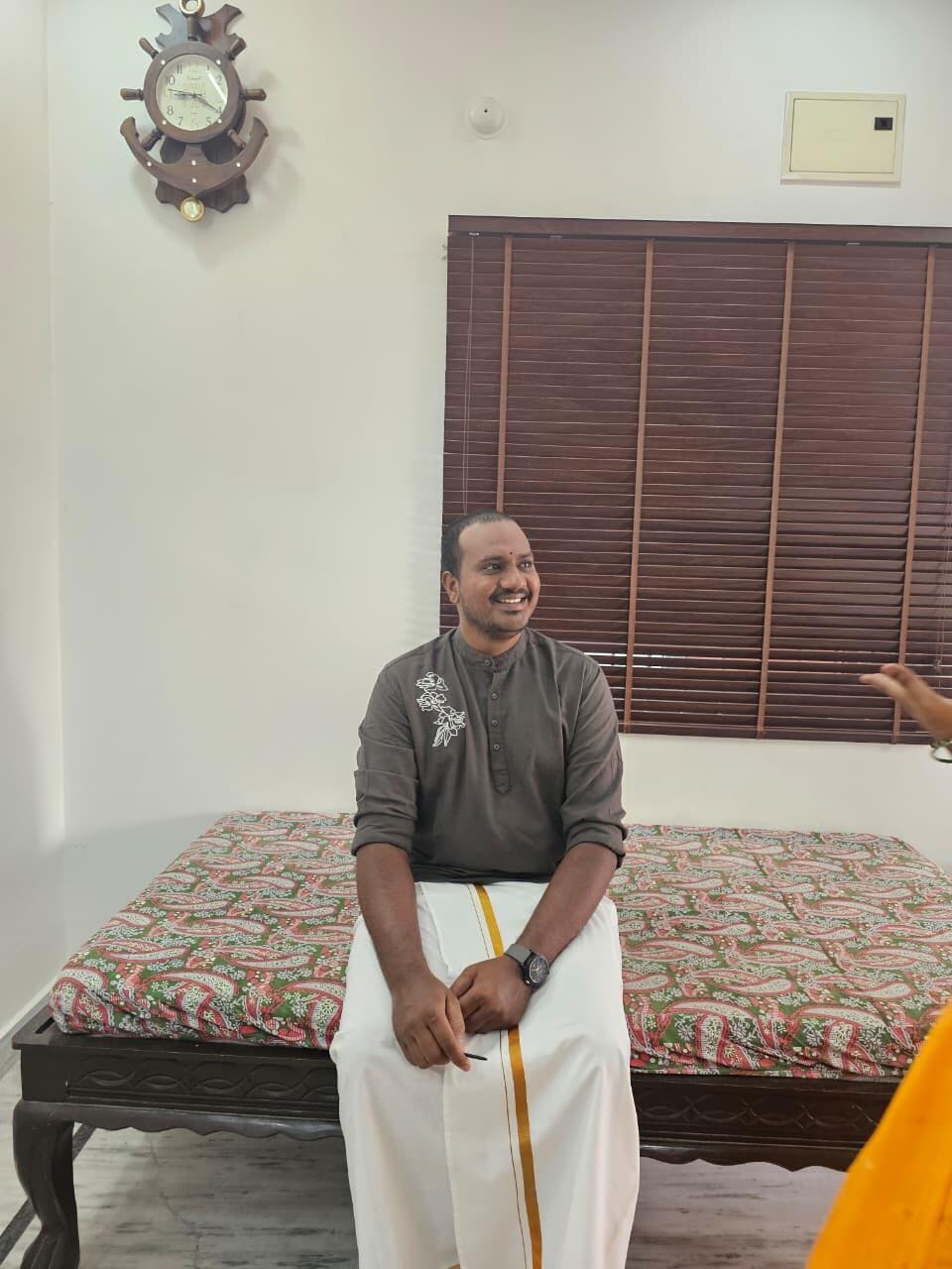 Petal Trace is a modern festive essential crafted in a breathable fabric with a soft, understated sheen. The relaxed-fit silhouette is accented with delicate floral line embroidery, tracing organic petal forms that add subtle texture and quiet elegance. Finished with a clean mandarin collar, it keeps the look refined yet effortless.