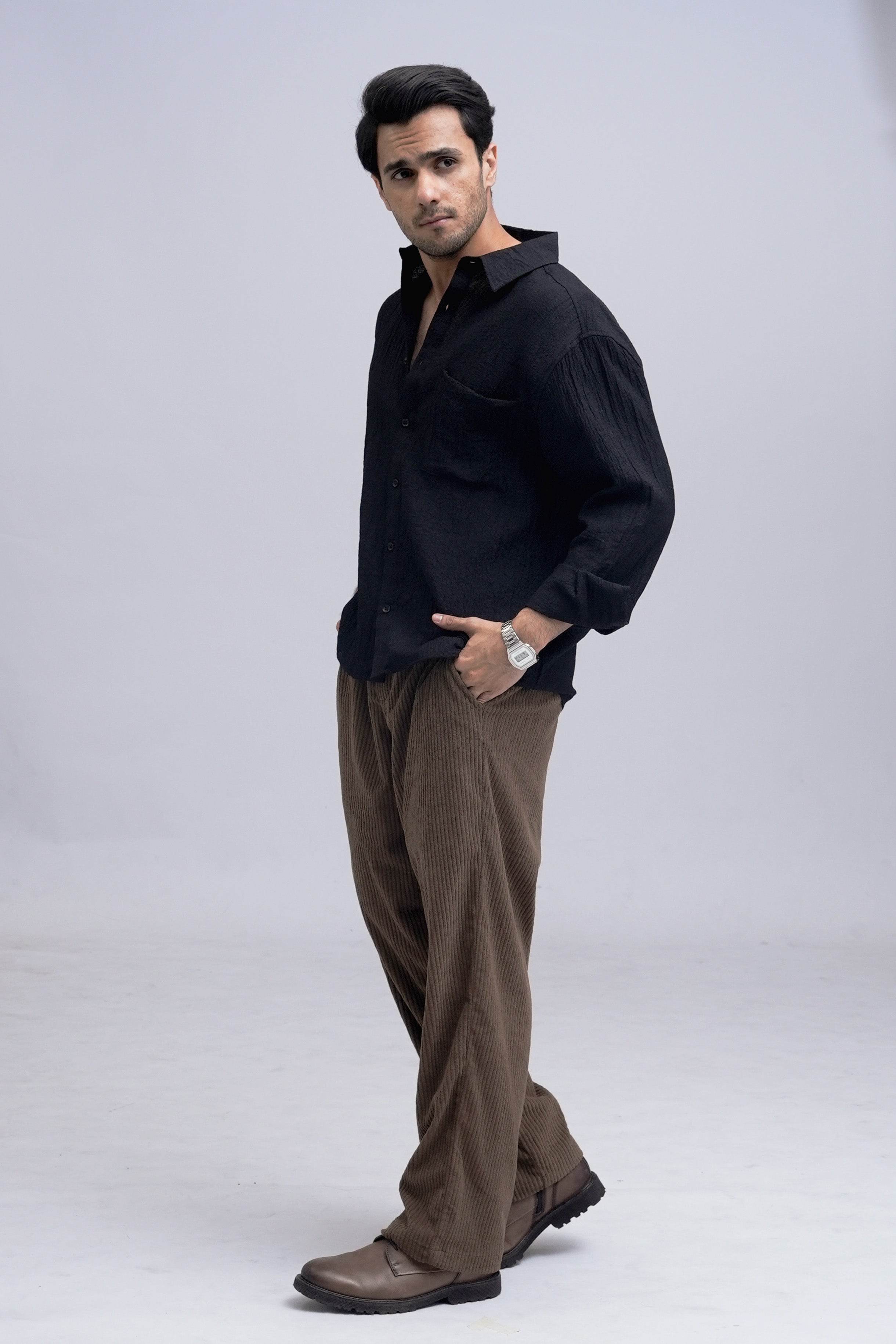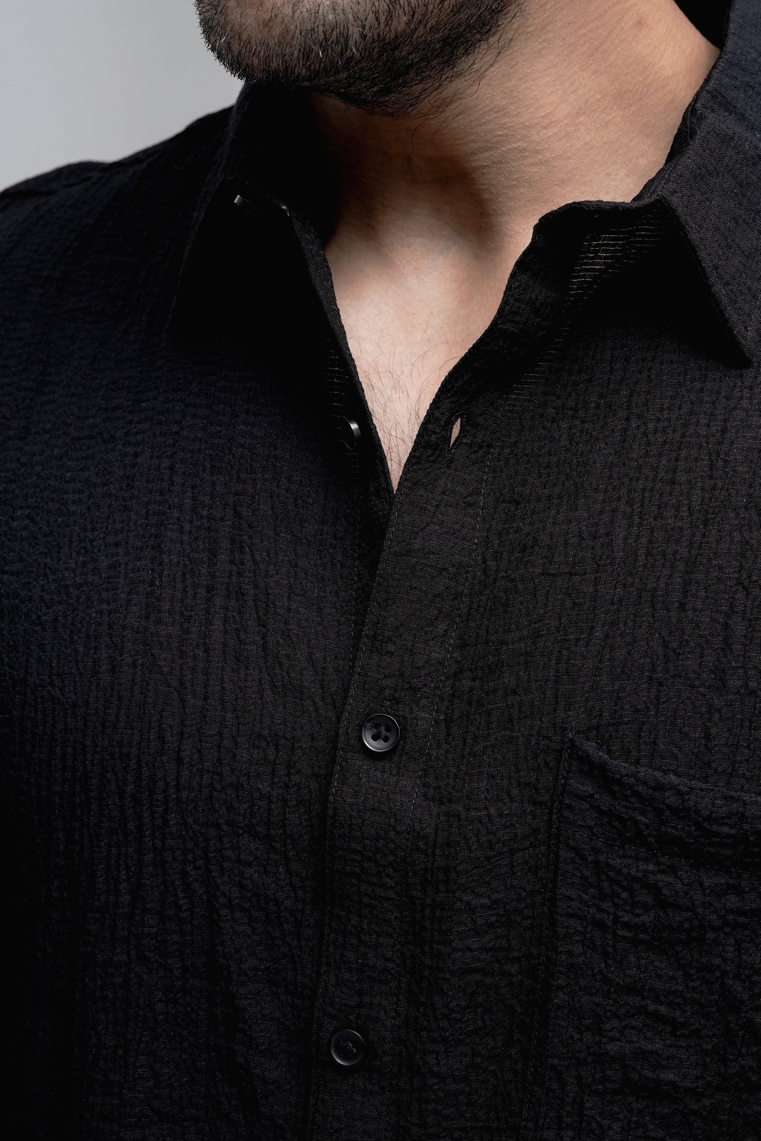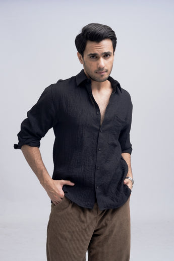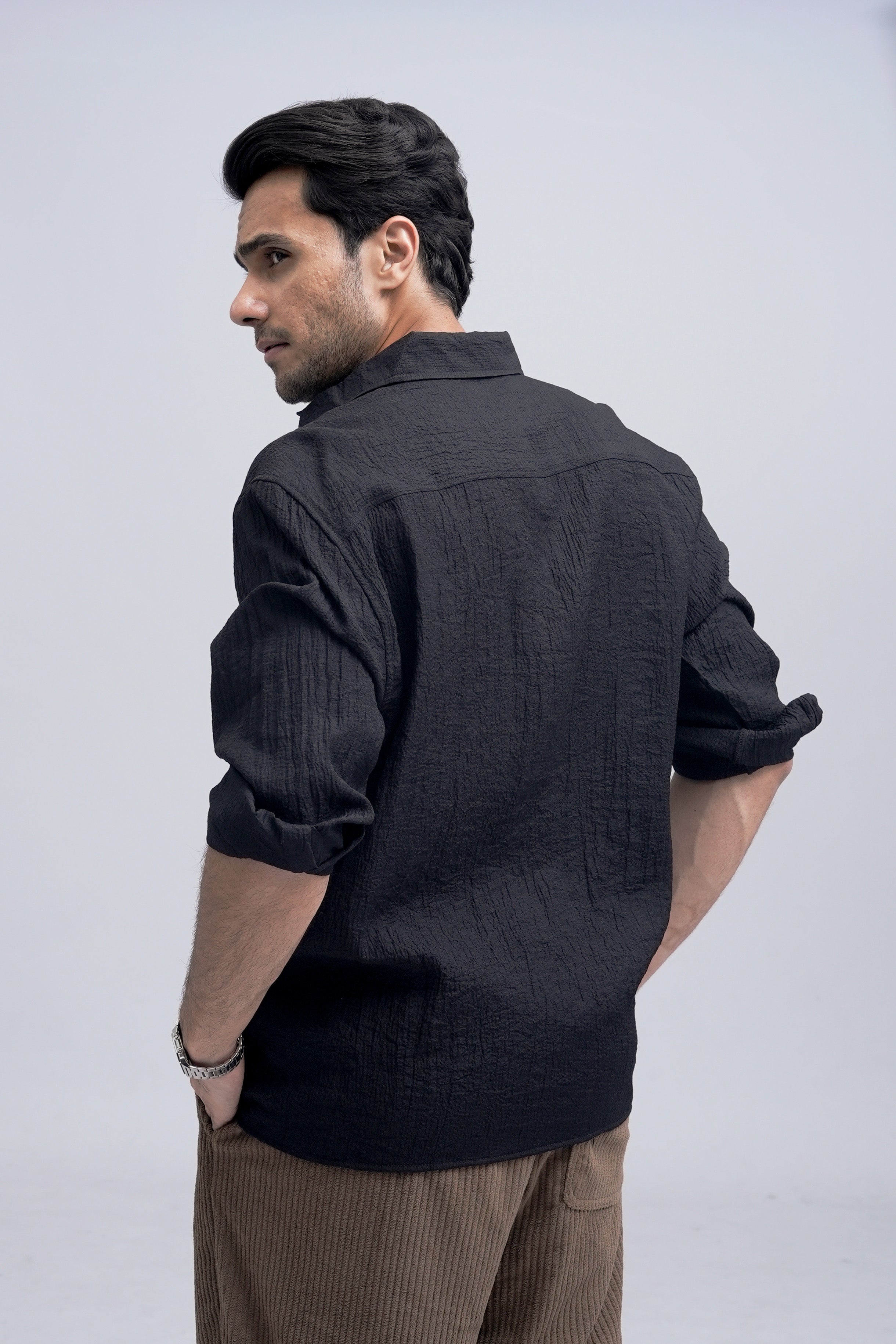 Crafted in a textured fabric, this shirt is designed in a boxy, relaxed silhouette for effortless ease. The fabric adds depth and character while maintaining breathability and comfort for all-day wear. Finished with clean construction, this piece balances structure with movement, making it a versatile essential for modern wardrobes. Style it with straight or relaxed-fit trousers for a clean look, or layer it open over a tee with denim for an easy, off-duty vibe.