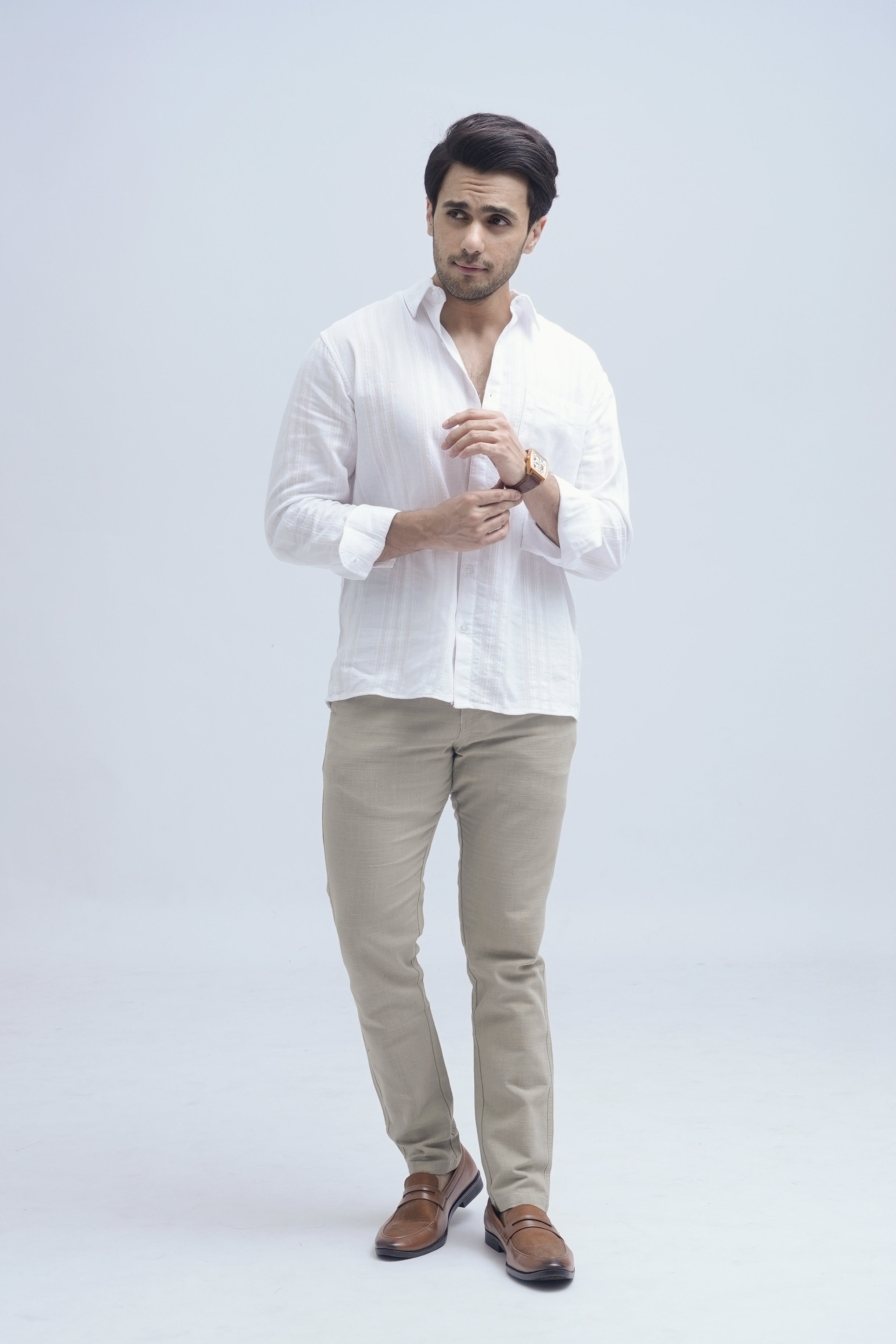 Crafted in a textured fabric, this shirt is designed in a boxy, relaxed silhouette for effortless ease. The fabric adds depth and character while maintaining breathability and comfort for all-day wear. Finished with clean construction, this piece balances structure with movement, making it a versatile essential for modern wardrobes. Style it with straight or relaxed-fit trousers for a clean look, or layer it open over a tee with denim for an easy, off-duty vibe.